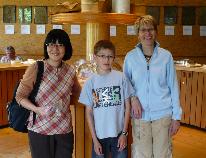| 下の写真の様にヴァージニさんと息子さんと一緒に写真を撮りました。ヴァージニさんは英語が話せるので、とても助かりました。ここに来る前に行った幾つかのチーズの製造現場で湧いて来た疑問も、彼女のお陰で解決できました。息子さんは、チーズが好きな様で、将来は四代目の社長になることと思います。お母さんと一緒に外国から来たお客さんともてなすとは、何とも頼もしい小学生でした。 |
