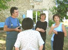 9. 作業は午後3時には終わり、お庭でひと時の語らいです。これからブーゴーさんがトゥールーズへミニバンで納品に行きます。(45分ぐらい。) |