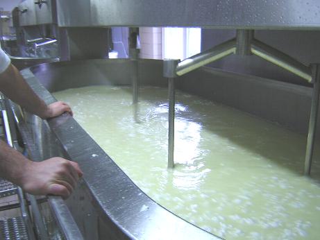 この後で抜き取られ、別のタンクに集められ、リコッタを作る原料にします。