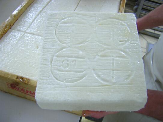 ると黄色い太いホースでタレッジョの四角い型にそのまま注がれます。ホエーは、