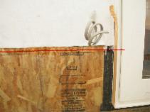 2.この物質は、床のコンクリートの表面にも塗られていました。最初このコンクリートの床を見たときに湿って色が変わっているのかと思いましたが、この接着剤の様な樹脂のせいで色が違って見えたのです。 |